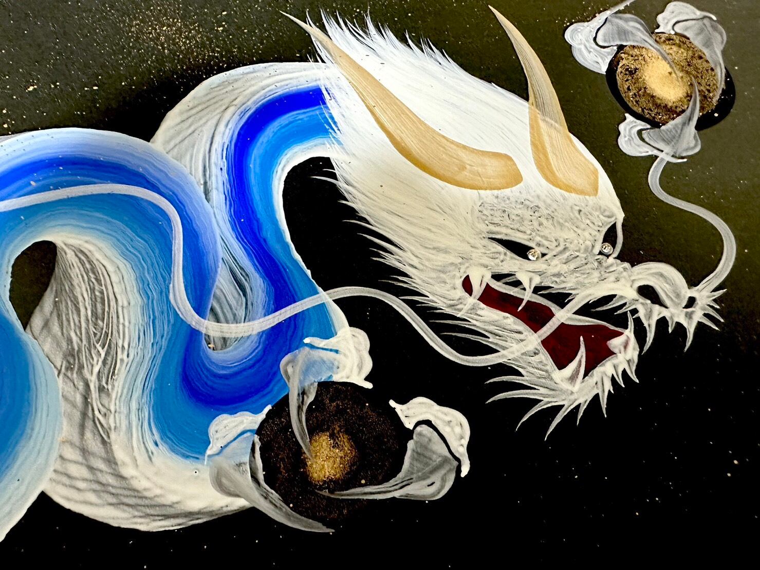 動画で見た一筆龍絵師は京都の方だということを知り、ダメ元でその方にコンタクトをとってみたところ、「本気で学びたいのであれば・・・」とのご厚意をいただき、直接ご指導をいただく。