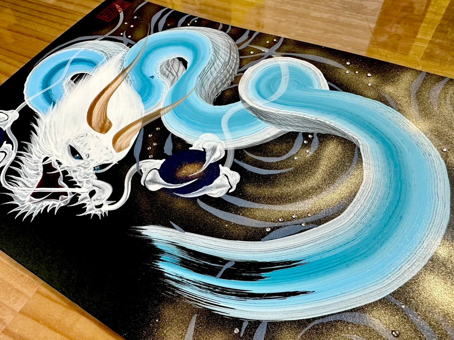 ※最初はたった一滴の雫が、小さな輪から大きな輪になり、その輪は”和”となり”円”となり、深い”縁”につながる。そのご縁はどんどん大きくなることから、一筆龍との相性がとてもよい作品です。