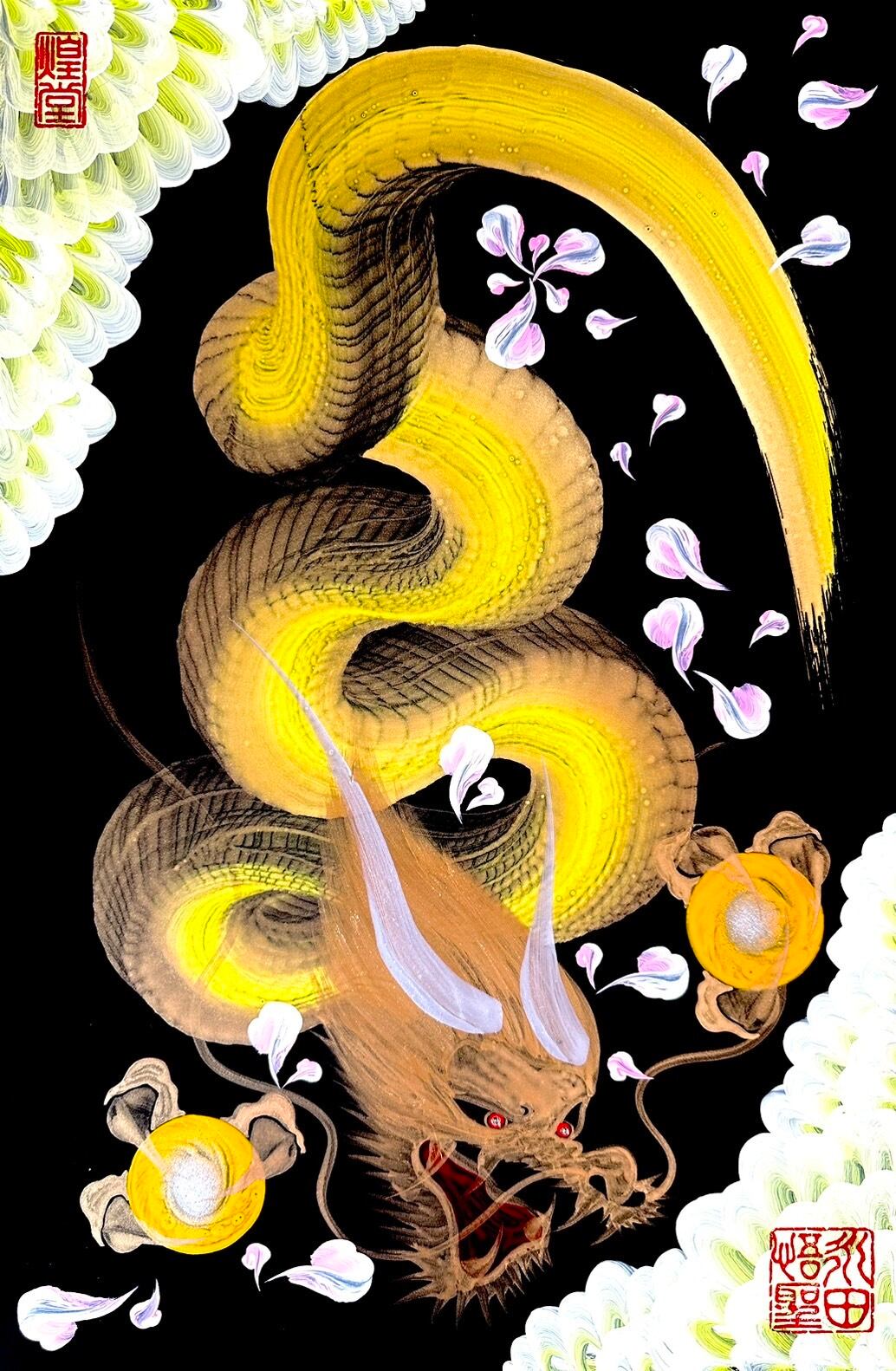 動画で見た一筆龍絵師は京都の方だということを知り、ダメ元でその方にコンタクトをとってみたところ、「本気で学びたいのであれば・・・」とのご厚意をいただき、直接ご指導をいただく。